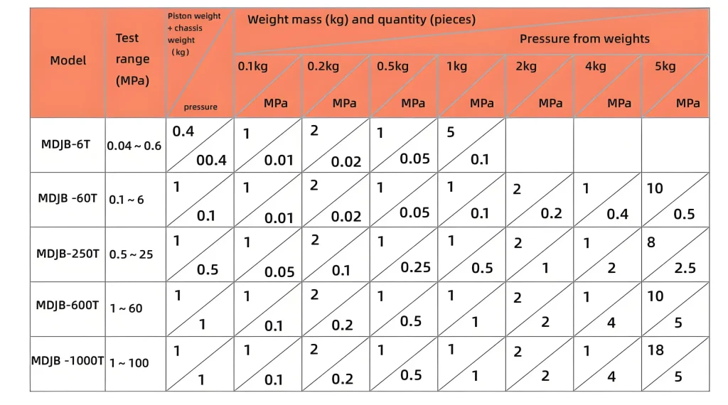 - Carbon steel and non-magnetic stainless steel weights ensure accurate pressure generation.