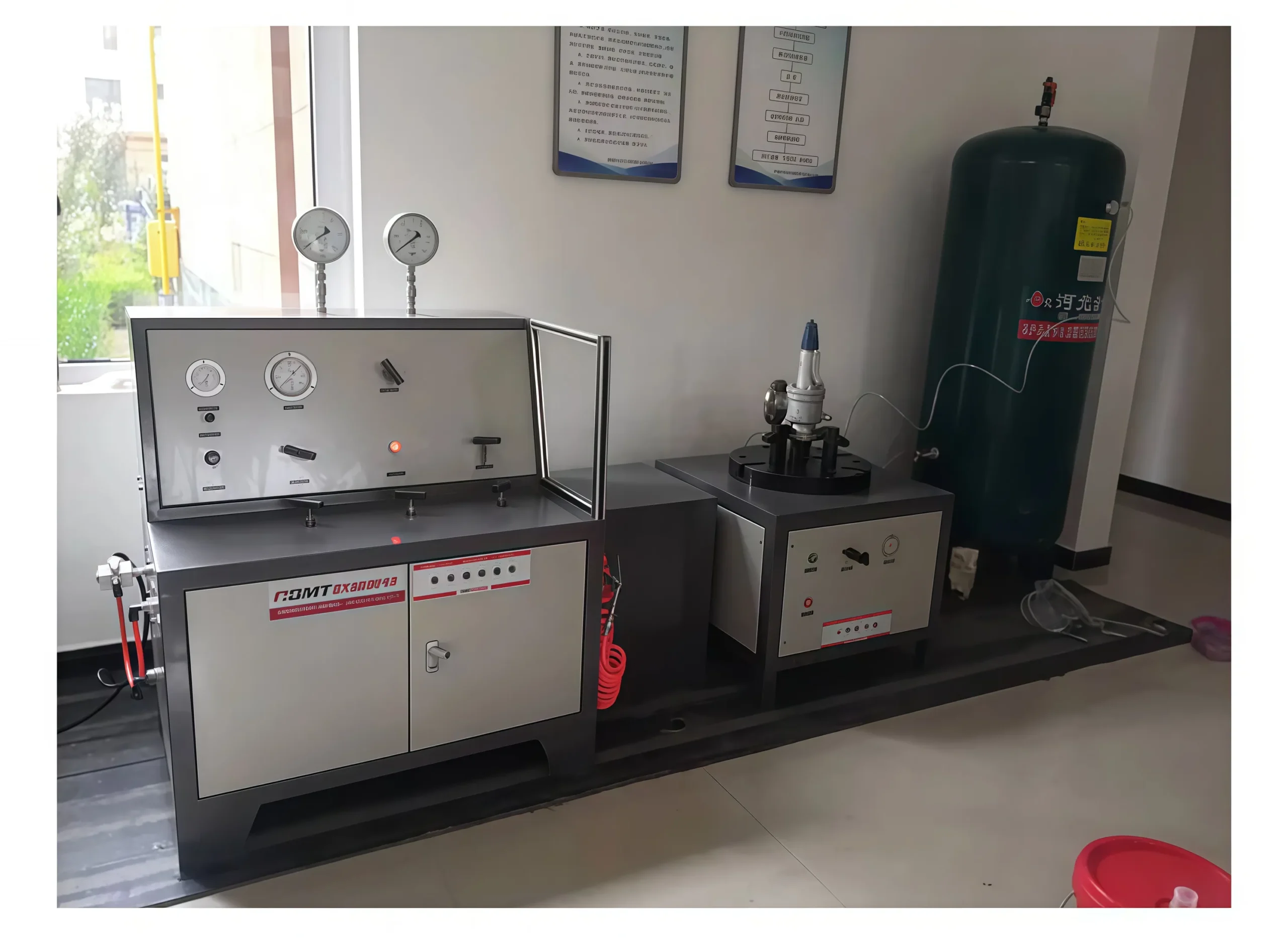 The bench is equipped with a gas cylinder, enabling continuous testing operations without frequent interruption.