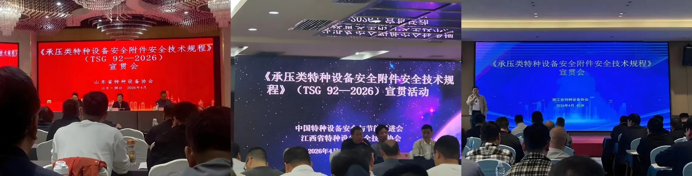 Recently, our company actively followed the latest developments in special equipment safety regulations and sent representatives to attend the promotion and implementation meetings for the Safety Technical Regulation for Safety Accessories of Pressure Special Equipment (TSG 92—2026), organized by the Special Equipment Associations of Zhejiang, Shandong, and Jiangxi.